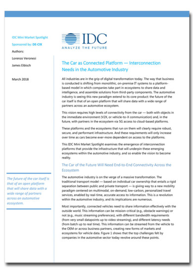 The Car as Connected Platform — Interconnection Needs in the Automotive Industry